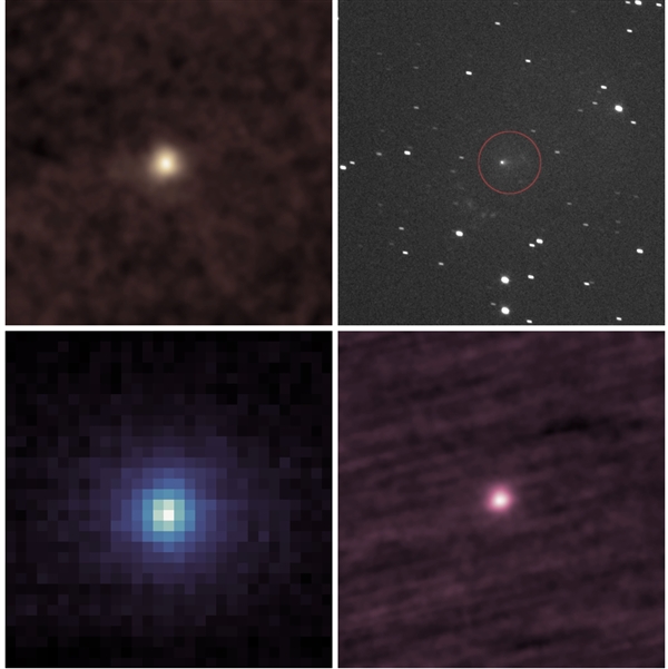 从左上角顺时针方向:10月15日和16日,欧洲航天局/美国宇航局的SOHO任务观测到的3I/ATLAS;9月16日,“露西号”航天器观测到的;9月11日至25日,STEREO-A航天器拍摄的图像组合而成的;以及10月9日,火星轨道探测器MAVEN观测到的。图源:NASA