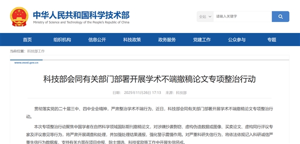 重磅!科技部发文:部署开展学术不端撤稿论文专项整治行动,严肃处理抄袭剽窃、伪造数据或图像、买卖论文、虚构评议专家及评议意见等行为