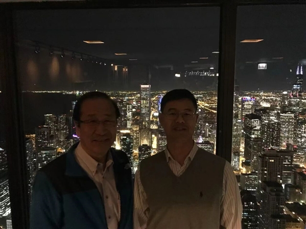 林文斌(右)与诺奖得主北川进在芝加哥