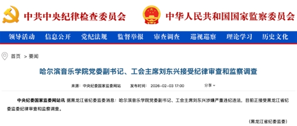2026年2月3日,黑龙江省纪委监委发布通报,哈尔滨音乐学院党委副书记、工会主席刘东兴涉嫌严重违纪违法,接受纪律审查和监察调查。两个多月后,2026年4月22日,黑龙江省纪委监委公布了立案审查调查结果。