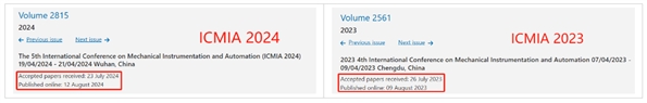 ICMIA 2023,会后4个月见刊,见刊后1个月检索