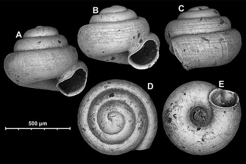 研究人员还在老挝发现了一种稍大的蜗牛,将其命名为Angustopila coprologos,这是一个古希腊语词语,意思是“粪便采集者”。这种蜗牛高度为0.51毫米,它似乎能把细小的泥土颗粒——可能是自己的粪便——以放射状的方式排列在外壳表面。