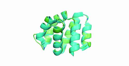 来自天然蛋白的目标结构(天蓝色)与相应从头设计蛋白的晶体结构(绿色)叠合图 课题组供图