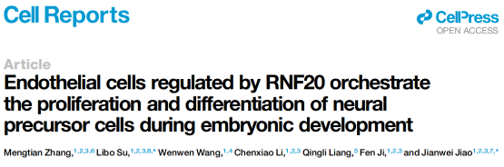 中国科学院动物研究所焦建伟团队发现,环指蛋白20(RNF20)可以通过调控内皮细胞形成微环境的稳态,进而影响胚胎期皮层神经发生过程。