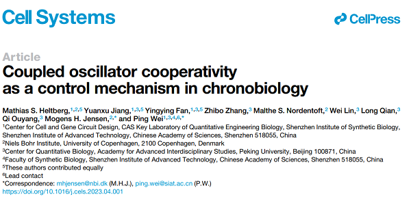 该研究由中国科学院深圳先进技术研究院合成生物学研究所魏平团队与丹麦皇家科学院院长、哥本哈根大学玻尔研究所的Mogens H. Jensen团队合作完成。深圳先进院为论文第一通讯单位。