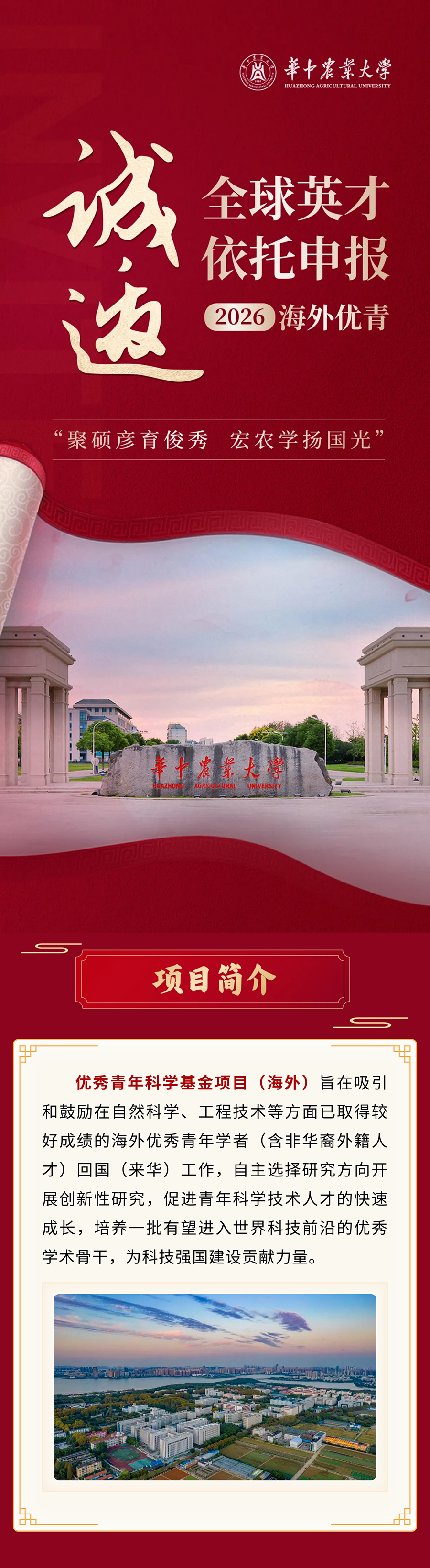 华中农业大学诚邀全球英才依托申报2026年海外优青