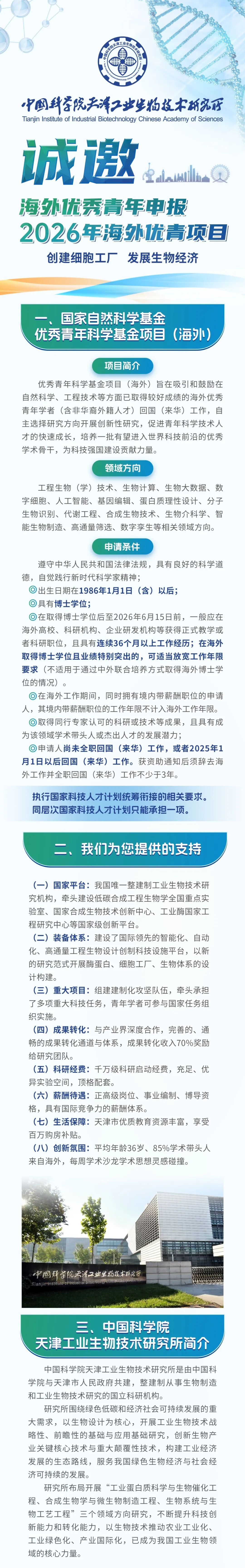 2026海外优青 | 中国科学院天津工业生物技术研究所诚邀海外优秀青年申报